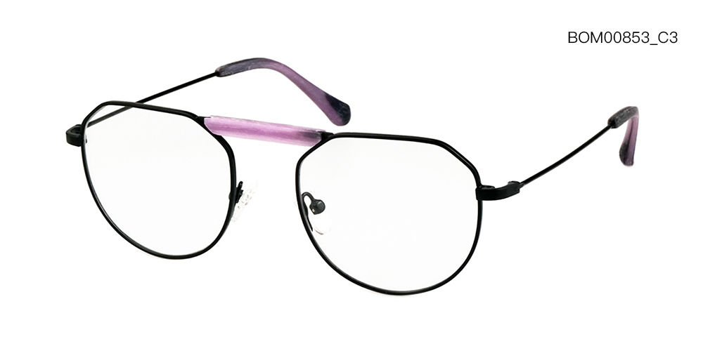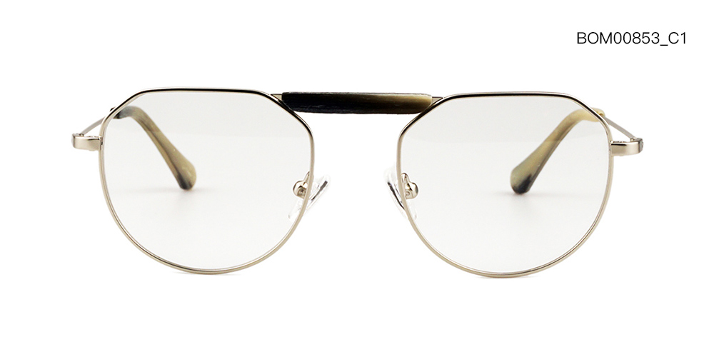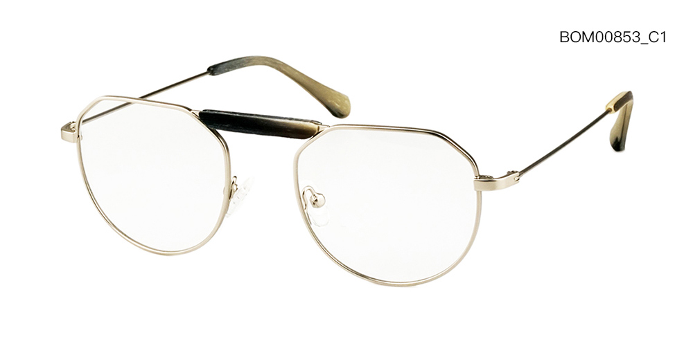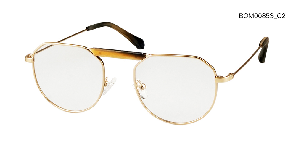 Montura de gafas de metal con diseño de acetato y estampado de madera. (BOM00853)