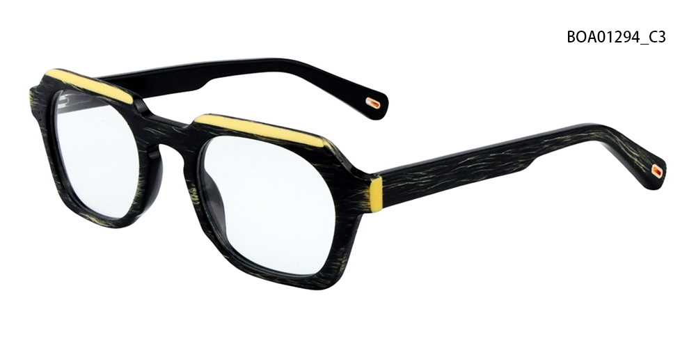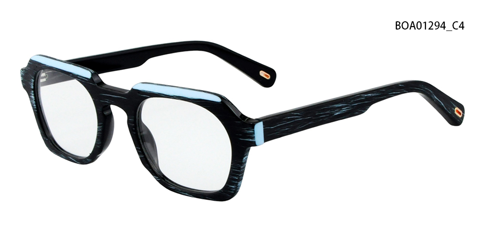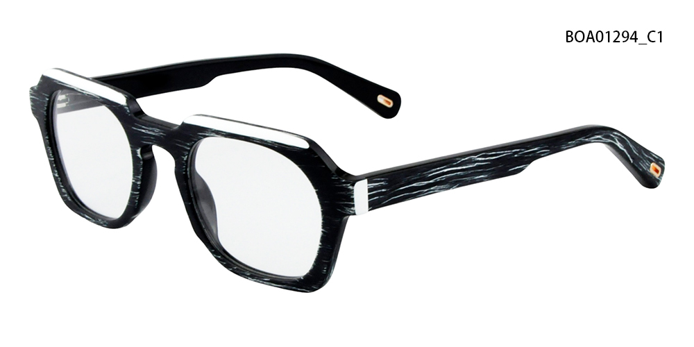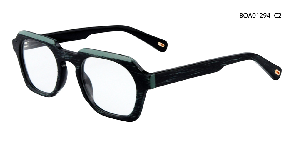 Montura óptica poligonal de acetato con acabado texturizado imitación madera a la deriva (BOA01294)
